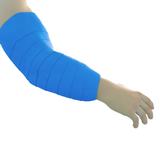 Die verletzte Körperregion mit der feuchten Baumwollbinde herzwärts einlagig bandagieren.